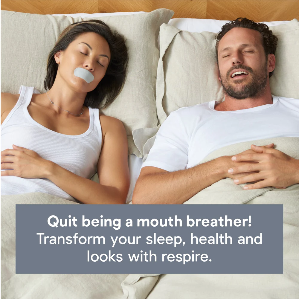 Respire are groundbreaking sleep strips that support nose breathing, leading to enhanced sleep quality, decreased snoring, and numerous health benefits. By gently keeping your mouth closed during sleep, Respire helps you embrace your body's natural breathing mechanism, allowing you to experience all the benefits of nose breathing without the typical side effects of other snoring solutions.